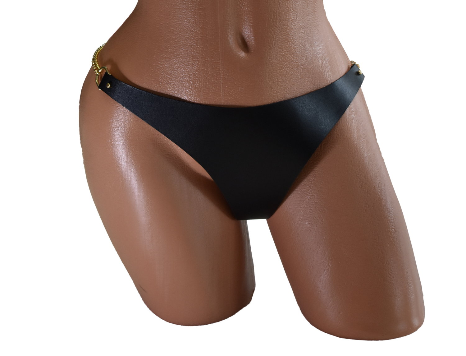 Luxusní kožená podprsenka. Zezadu pojištěna zlatýma řetízkama pro lepší vzhled.