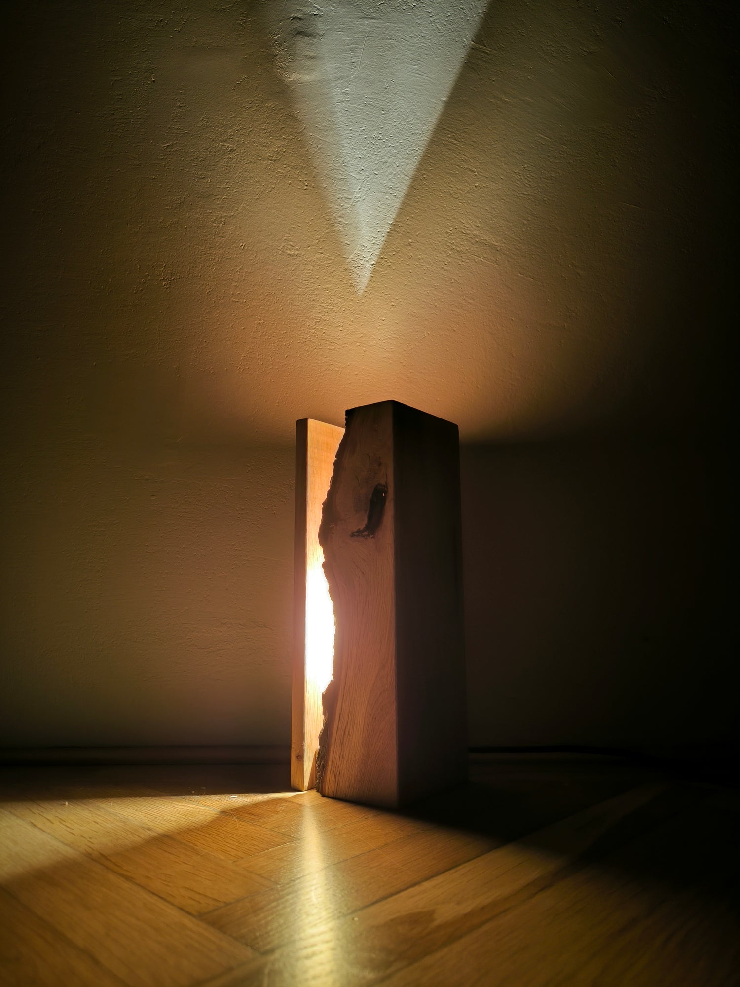 Stylová dubový lampička pro noční stolek. Slouží jako dekorativní osvětlení. Ošetřeno tvrdým voskovým olejem od značky OSMO.